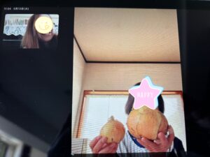 オンラインレッスンで生徒さんが普通の玉葱の4倍ぐらいの玉葱を見せてくれました。